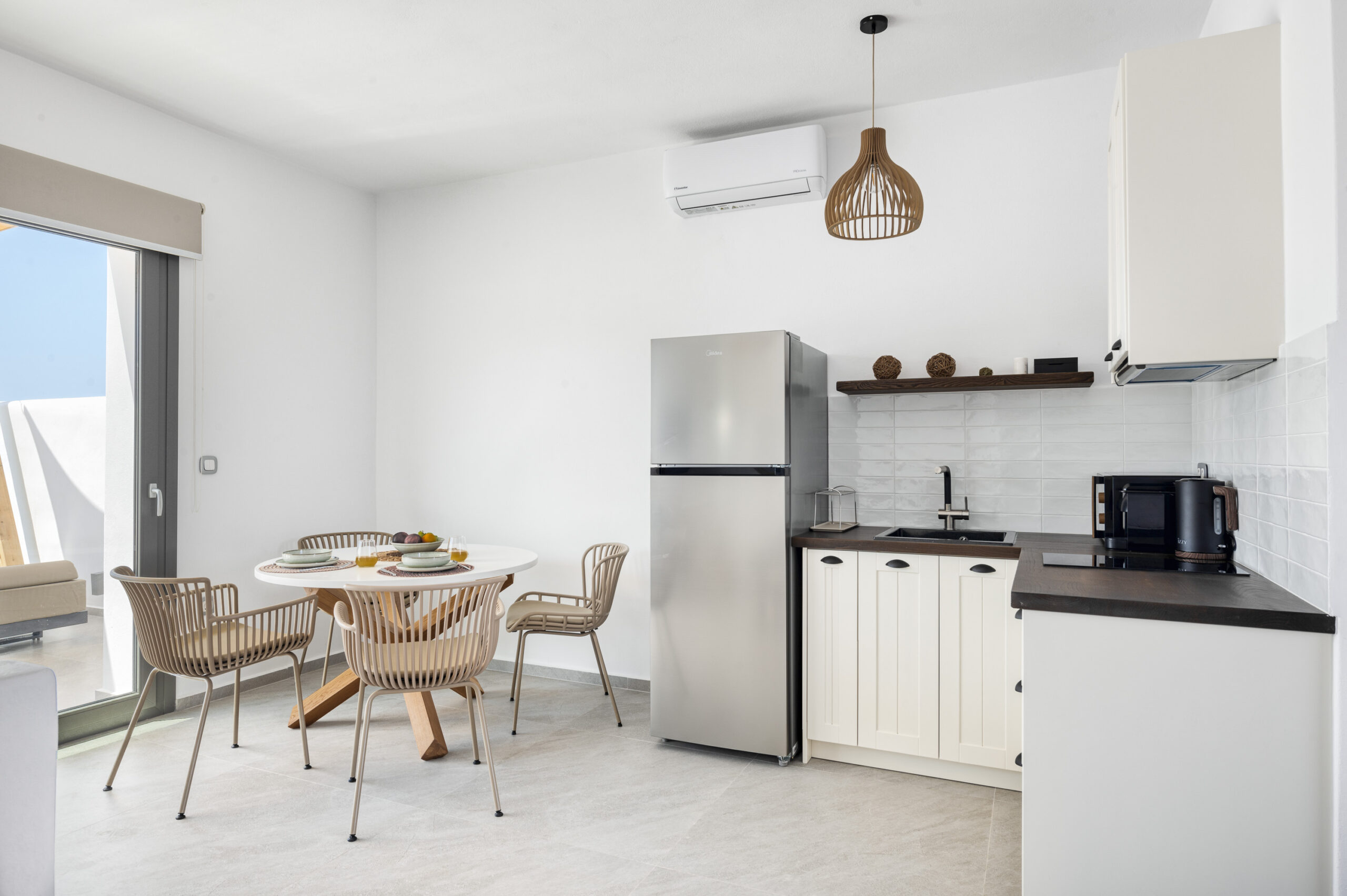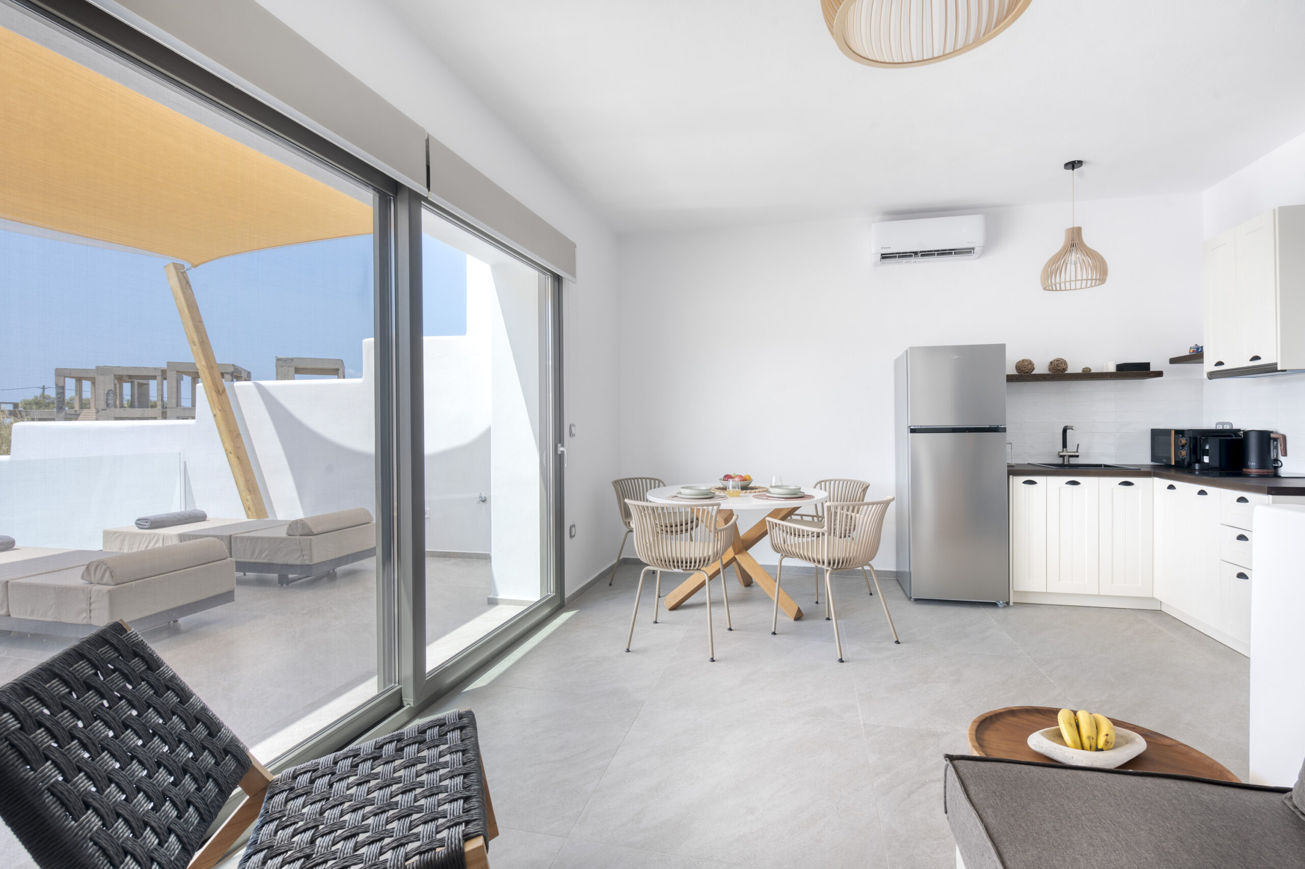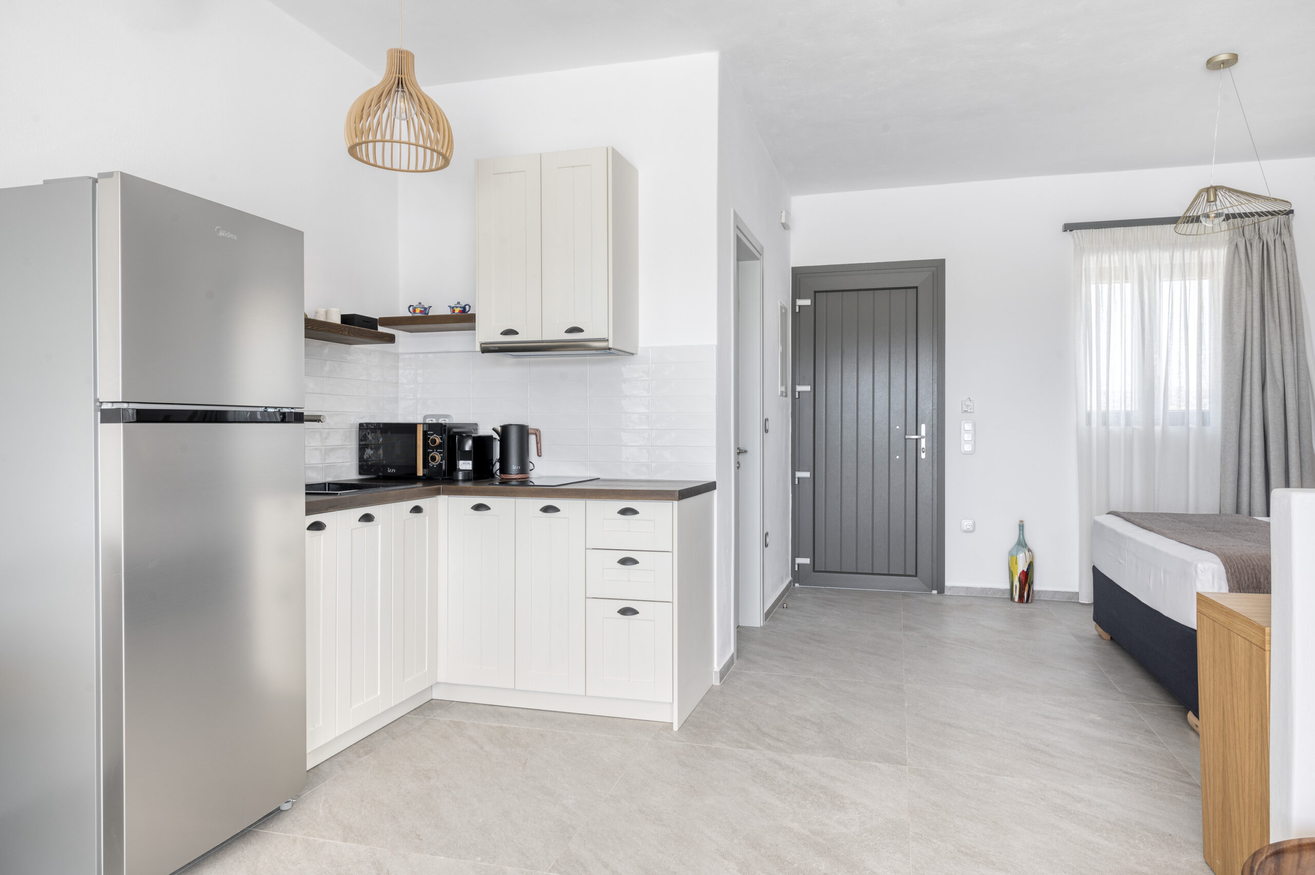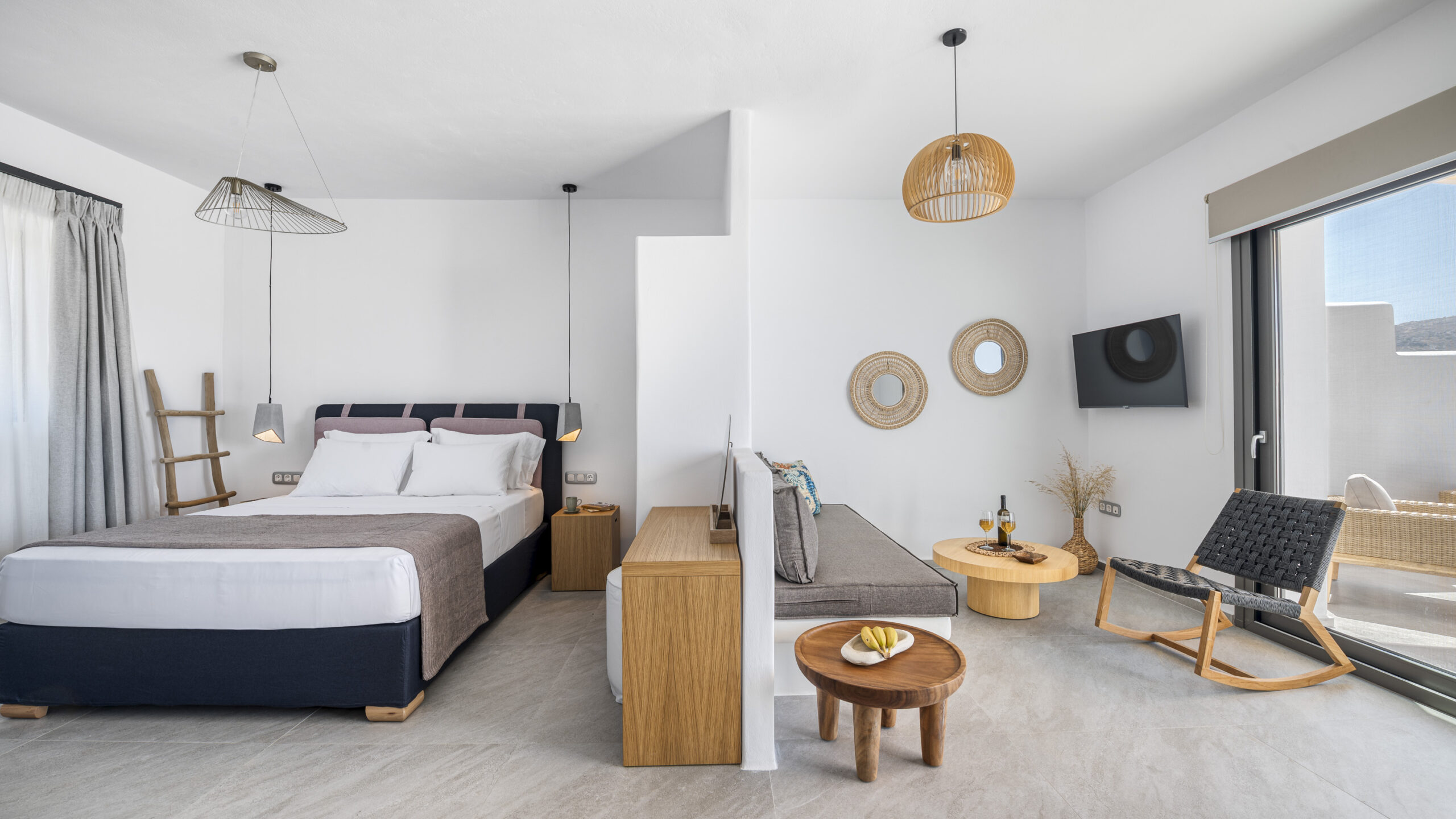 Rest comfortably on an anatomic double bed, with room for one additional guest on the cozy sofa. The suite includes a convenient kitchenette for quick meals.